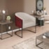 Kit 02 Poltronas Luiza Base de Ferro Preto Factor Vermelho e Linho Bege - Amarena Móveis - Amarena Moveis