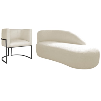 Kit Divã Luna 140cm Lado Direito e 01 Poltrona Base de Ferro Preto Linho Bege - Amarena Moveis