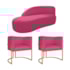 Kit Divã Luna 140cm Lado Esquerdo e 02 Poltronas Base de Ferro Dourado Suede Pink
