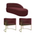 Kit Divã Luna 160cm Lado Direito e 02 Poltronas Base de Ferro Dourado Suede Bordo