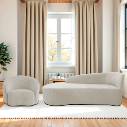 Kit Divã Recamier Orgânico França 160cm Lado Esquerdo e Poltrona Amore Linho Bege - Amarena Moveis
