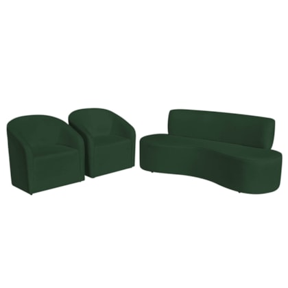 Kit Sofá Curvo Amsterdã 200cm e 2 Poltronas Luiza Max Suede Verde - Amarena Moveis