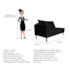 Recamier Azura 140cm com Almofada Lado Esquerdo Suede Preto - Amarena Móveis - Amarena Moveis
